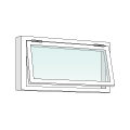 Här sitter gångjärnen i bågens överkant. Detta är en vanlig lösning i till exempel källare, garage och andra ställen där det av olika skäl bli opraktiskt med vridbara fönster.